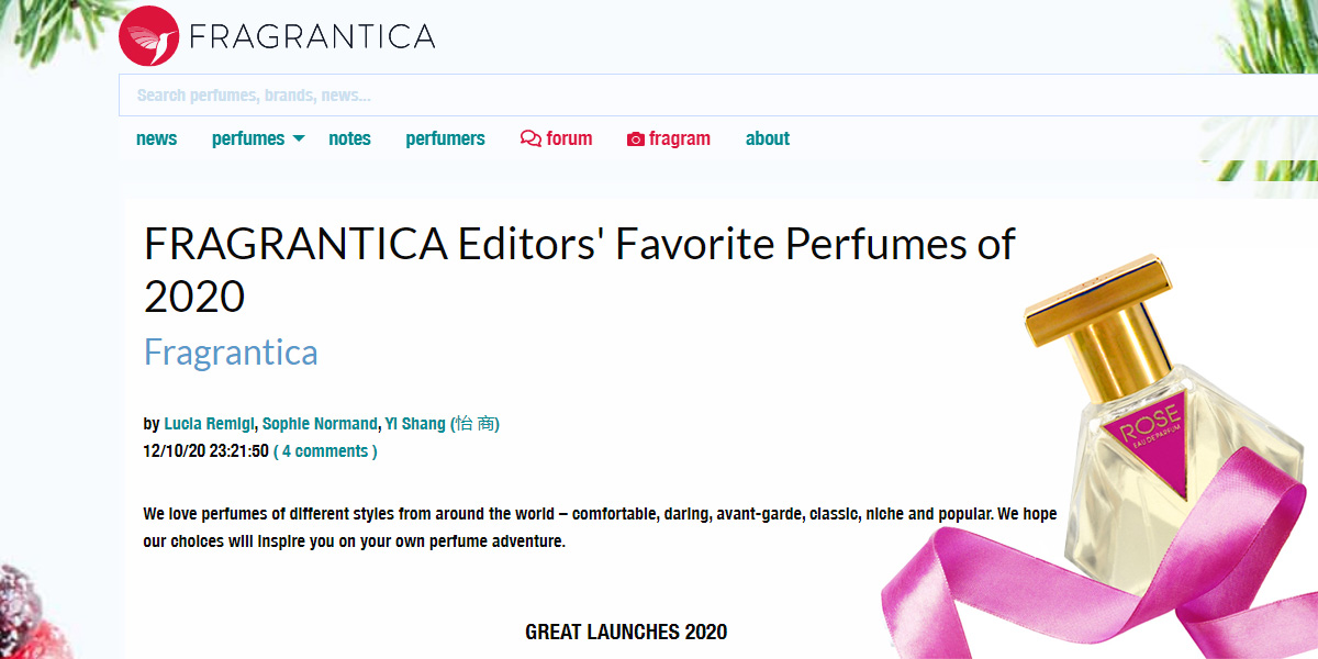 Thanks to Lucia Remigi, Fragrantica Editor, for selecting ROSE as favorite perfume and reviewing it as one of